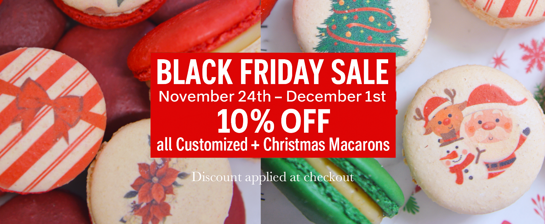 Get in touch with us to personalize your macarons. We provide endless possibilities for printing names and images. You can specify your preferences during checkout, and we'll customize your order according to your instructions. Choose from a variety of macaron colors, prints, and flavors (any flavor can be paired with any shell color), and let us know the date of your event. We'll ensure your order is delivered just in time for your special occasion.