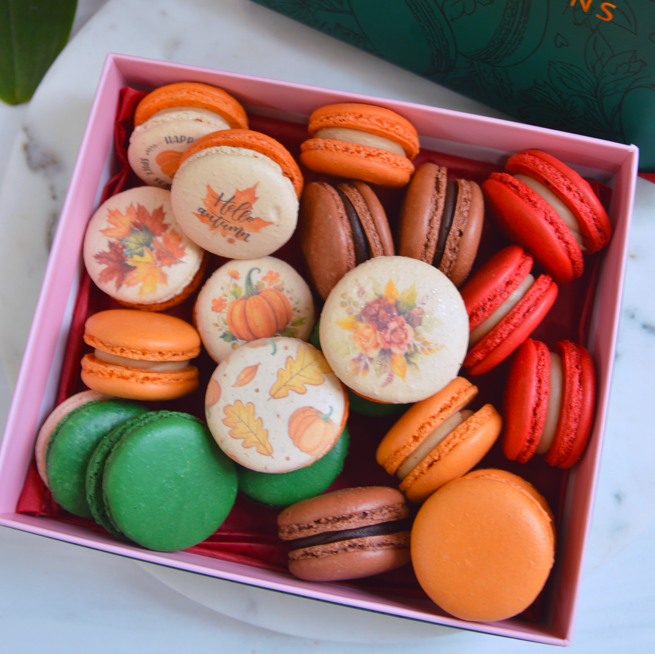 Get in touch with us to personalize your macarons. We provide endless possibilities for printing names and images. You can specify your preferences during checkout, and we'll customize your order according to your instructions. Choose from a variety of macaron colors, prints, and flavors (any flavor can be paired with any shell color), and let us know the date of your event. We'll ensure your order is delivered just in time for your special occasion.