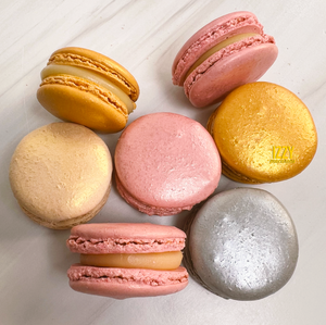 Shells: Almond Flour, Egg Whites, Confectioners’ Sugar, Artificial Food Coloring
