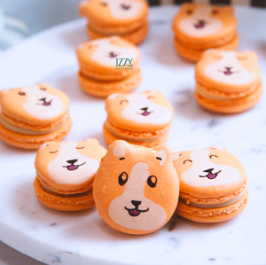 Shells: Almond Flour, Egg Whites, Confectioners’ Sugar, Artificial Food Coloring